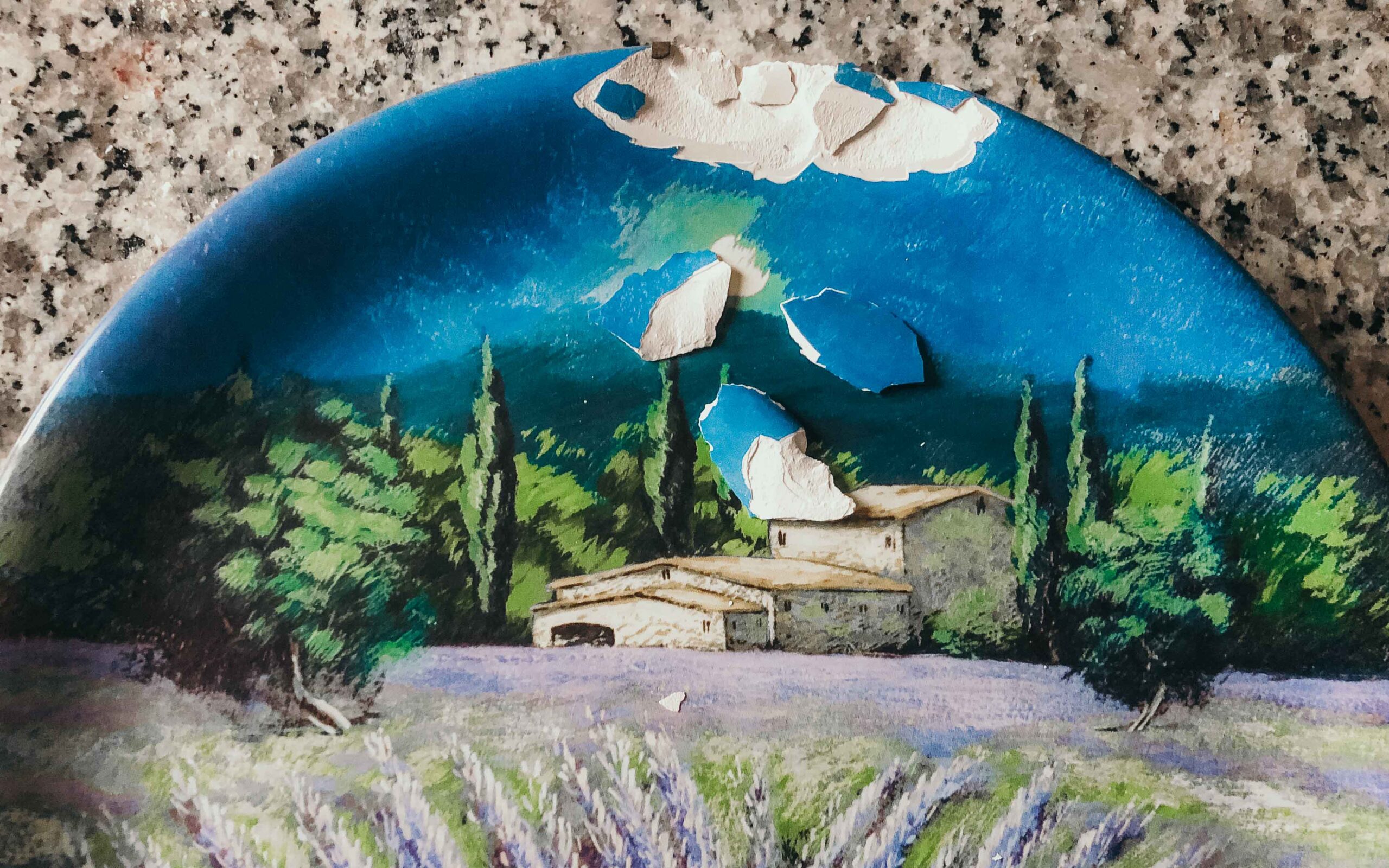 With a jolt and the heart beating fast, I got up from the couch a bit perplexed. I gathered some courage and headed towards the thud. And there it was: a roll of paper towel unrolled on the ground had cushioned the hasty fall of a plate hanged on the wall. The plate just splintered a little, but the imperfection made it less likeable. And yet, “I care a lot about it” I then told myself.